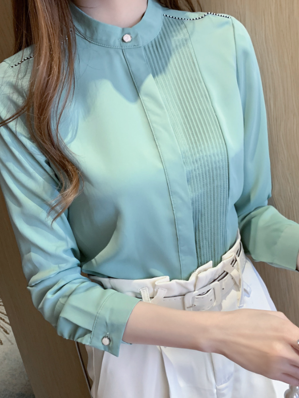 These beautifully tailored blouses are a great choice for any occasion. The simple but stylish design is a must-have for any wardrobe. The stand collar style adds a professional look and the pleated style also adds a modern edge that is sure to make heads turn. The light material is perfect for warm summer days.