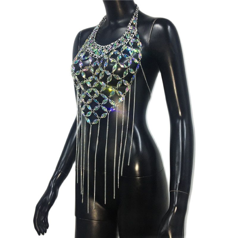 Be one step ahead of the fashionable pack with thise body jewelry! This backless halter top style body jewelry turns heads, featuring acrylic beads and chain tassels that'll make them do a double take. Accessorize like a boss and stand out from the crowd!