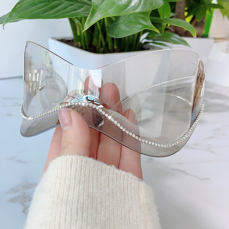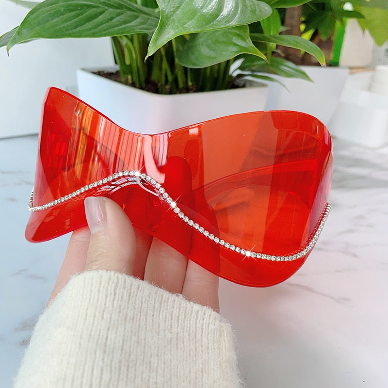 These Start The Action Oversized Sunglasses are designed for maximum visibility and protection. Made with rimless polycarbonate lenses for durability and comfort, available in a variety of colors to match your style. Suitable for outdoor activities.