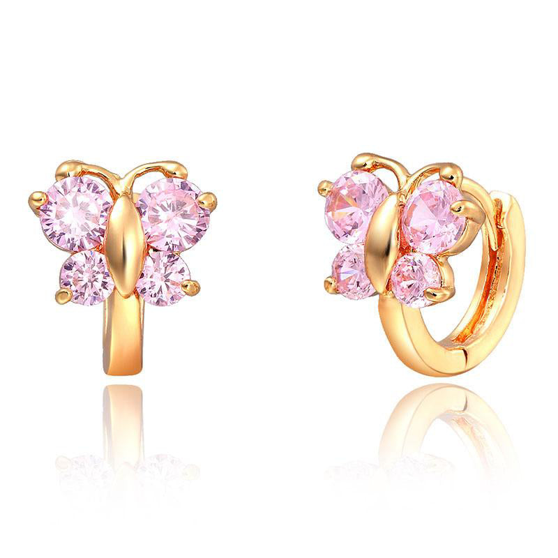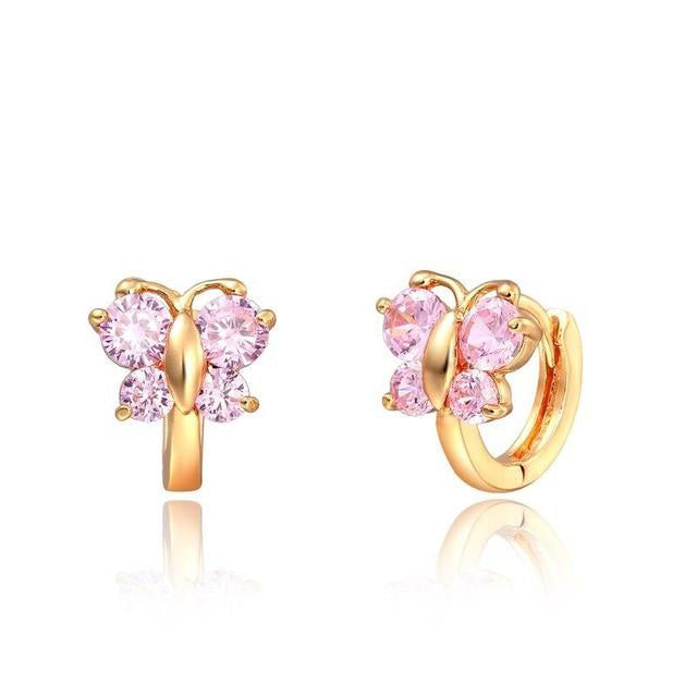 Windshow Cute Pink CZ Butterfly Small Hoop Earrings
