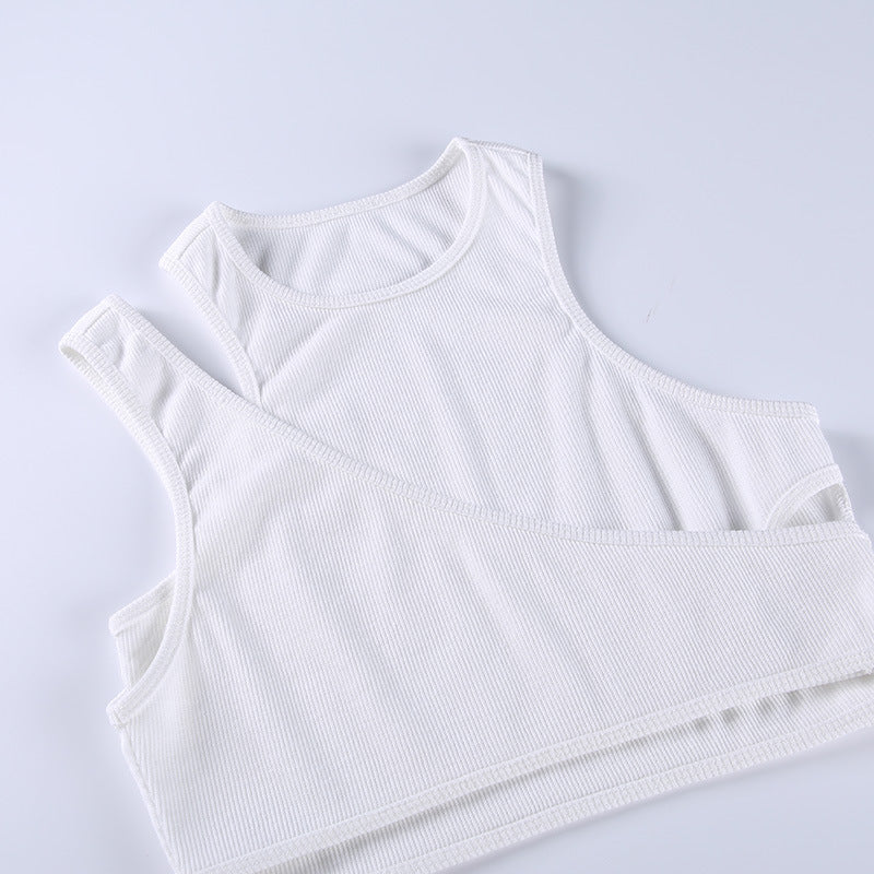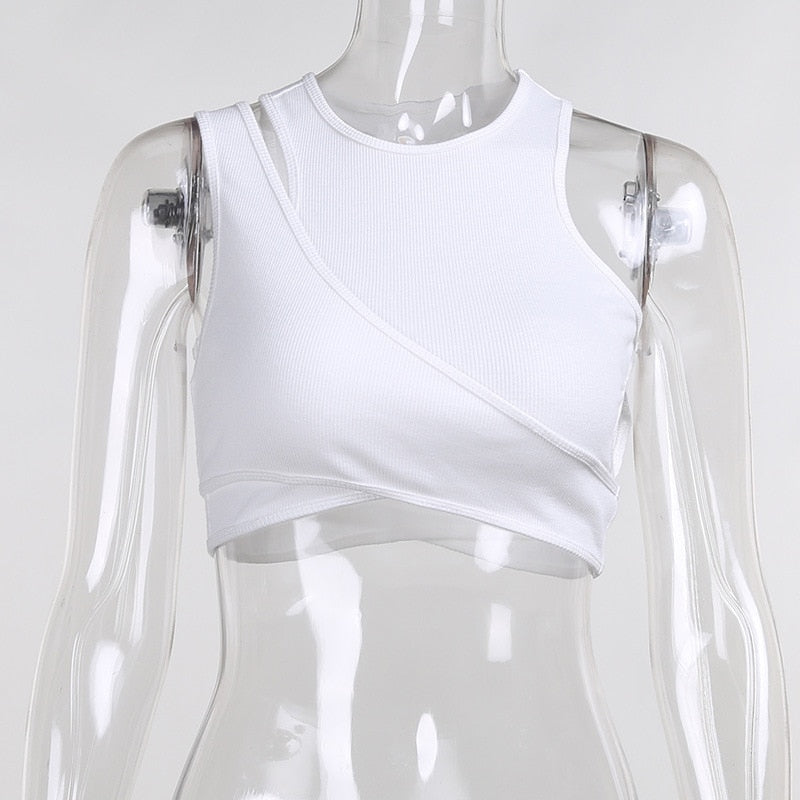 Solid Cotton Polyester Crop Top with Cut Out Style