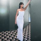 This Maxi dress is sure to become a wardrobe staple. The classic-looking silhouette has the right amount of flare to make the look flattering and sophisticated. The comfy spandex material gives off an elegant look that is sure to become a staple in any wardrobe.  The daring but classy spaghetti strap gives off a wild, sexy look that is sure to get noticed. This stylish maxi-length dress keeps your arms uncovered so you stay cool and comfortable.