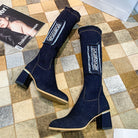 Denim on Fringe Patchwork Knee-high Boot