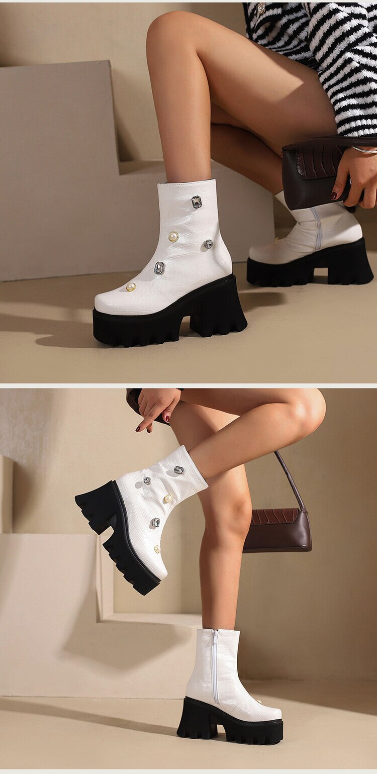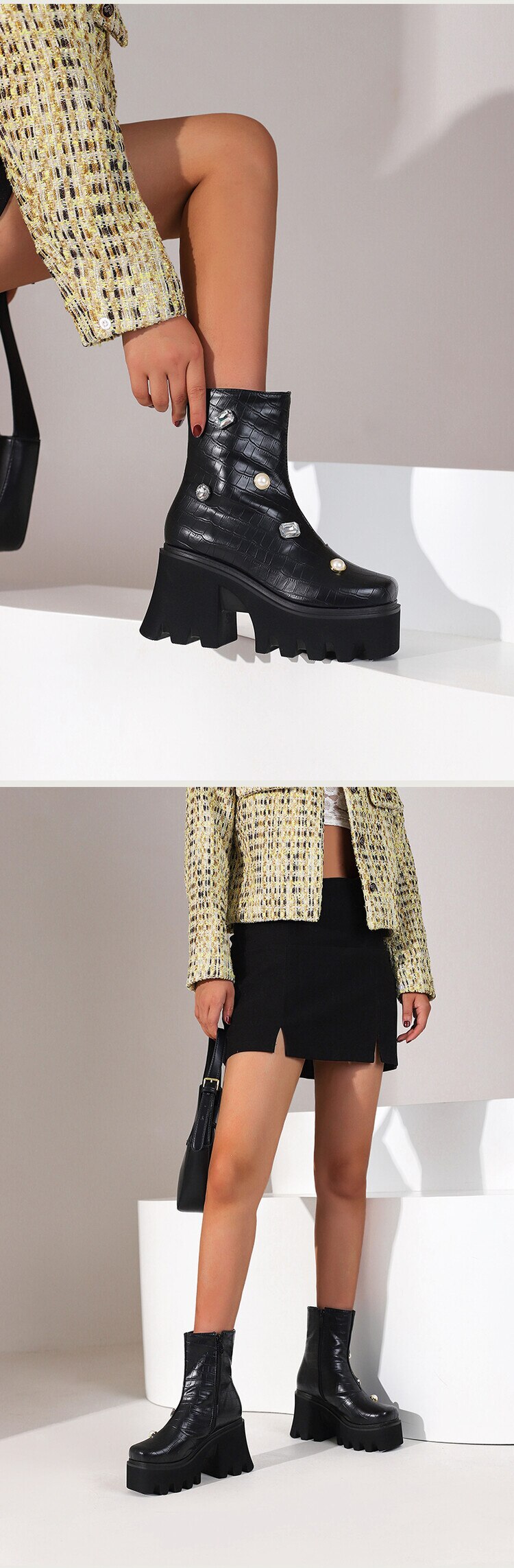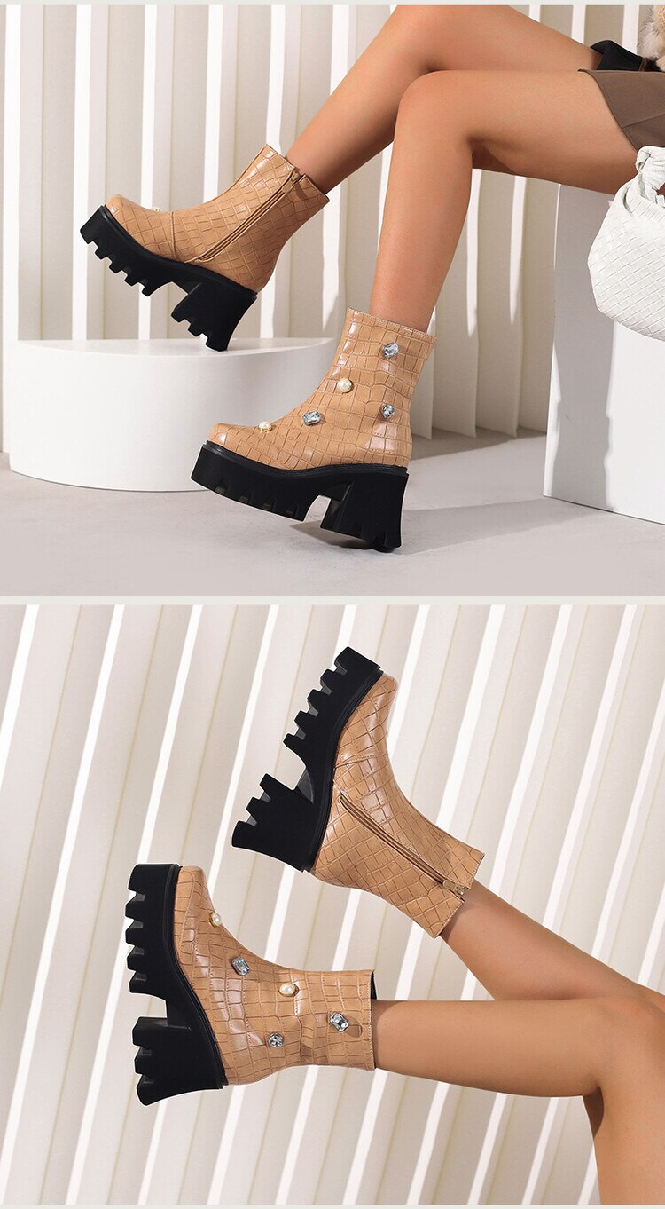 These unique and trendy women's boots are sure to turn heads. Featuring a chic ankle cut and animal skin pattern, these boots are a great way to show off some stylish rompers. A zipper is included to make getting on and off easy.