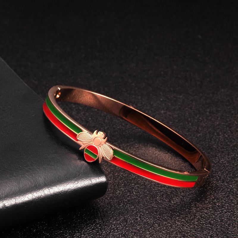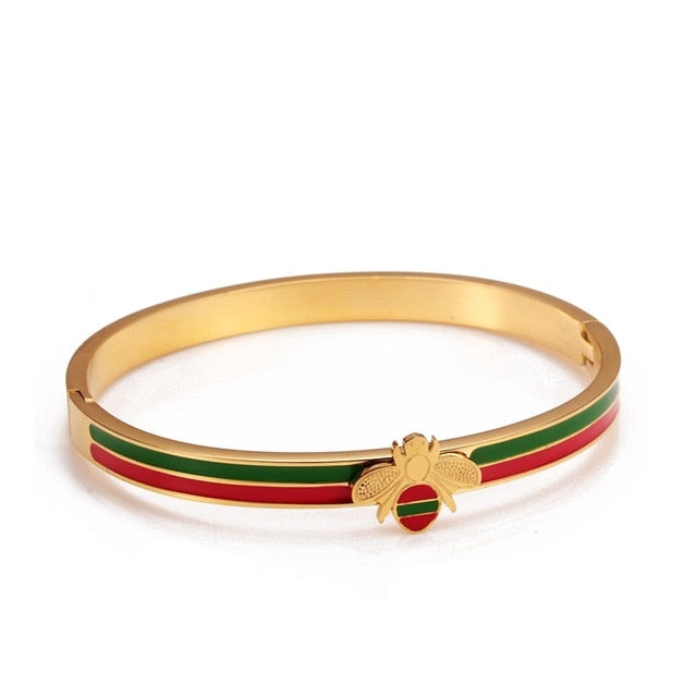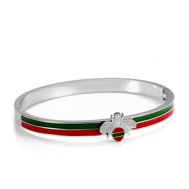 Stainless Steel Bangle Bracelet with Bee Charm