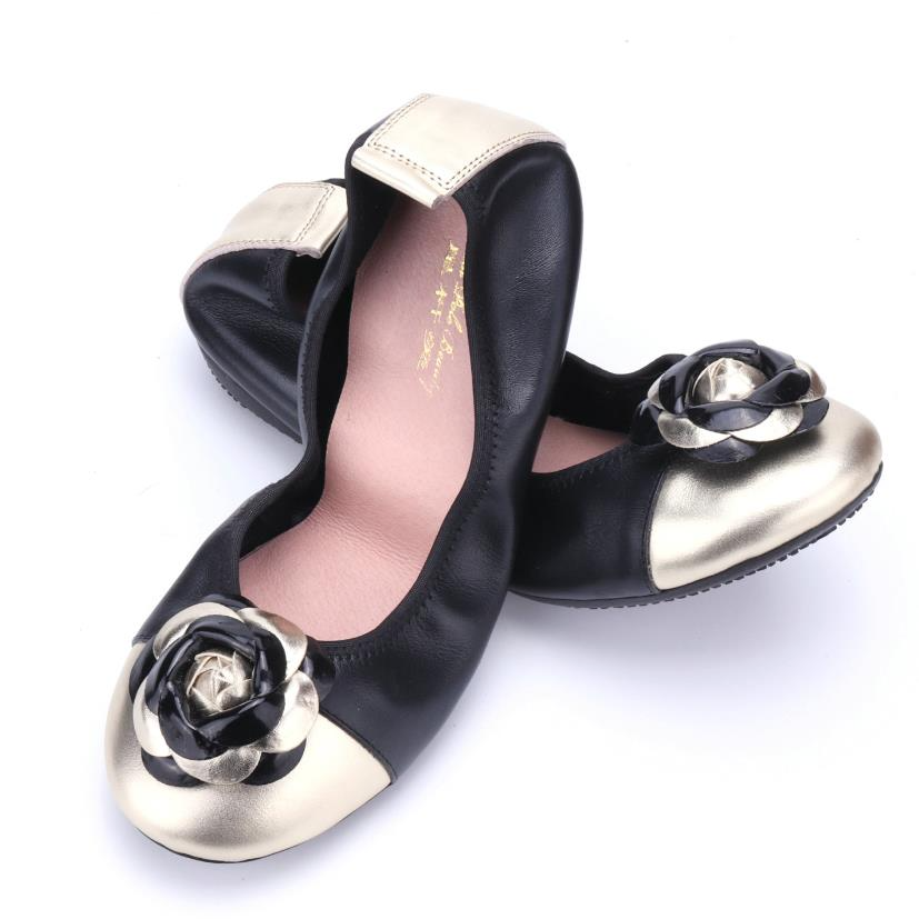 Genuine Cow Leather Floral Decoration Ballerina Flat Shoes