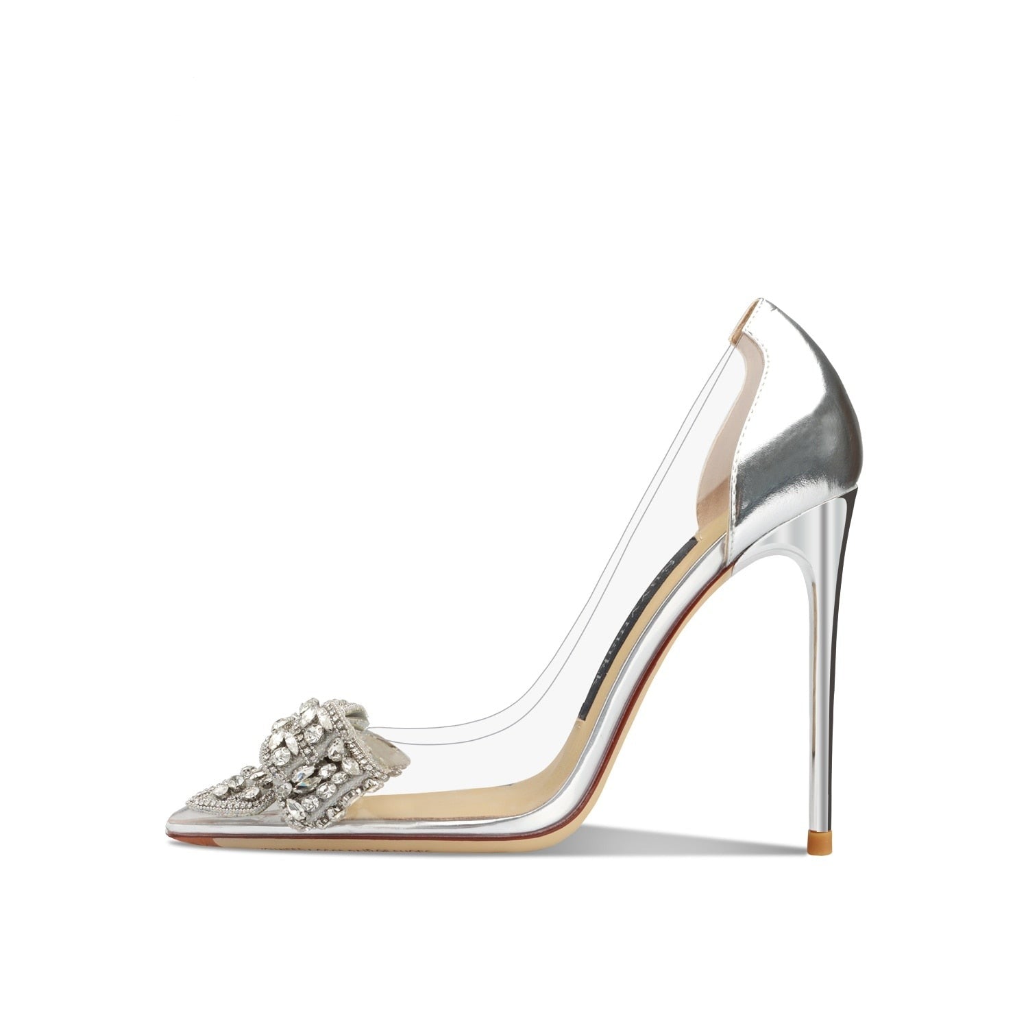 Women will love the look and fit of these on-trend stilettos that are designed to complement a wide variety of outfits. The trendy and feminine style is great for all special occasions. The pointed toe has a modern edge that is sure to make her stand out. The thin heels are perfect for dancing to a night out. The transparent color is a versatile choice that looks good with anything.