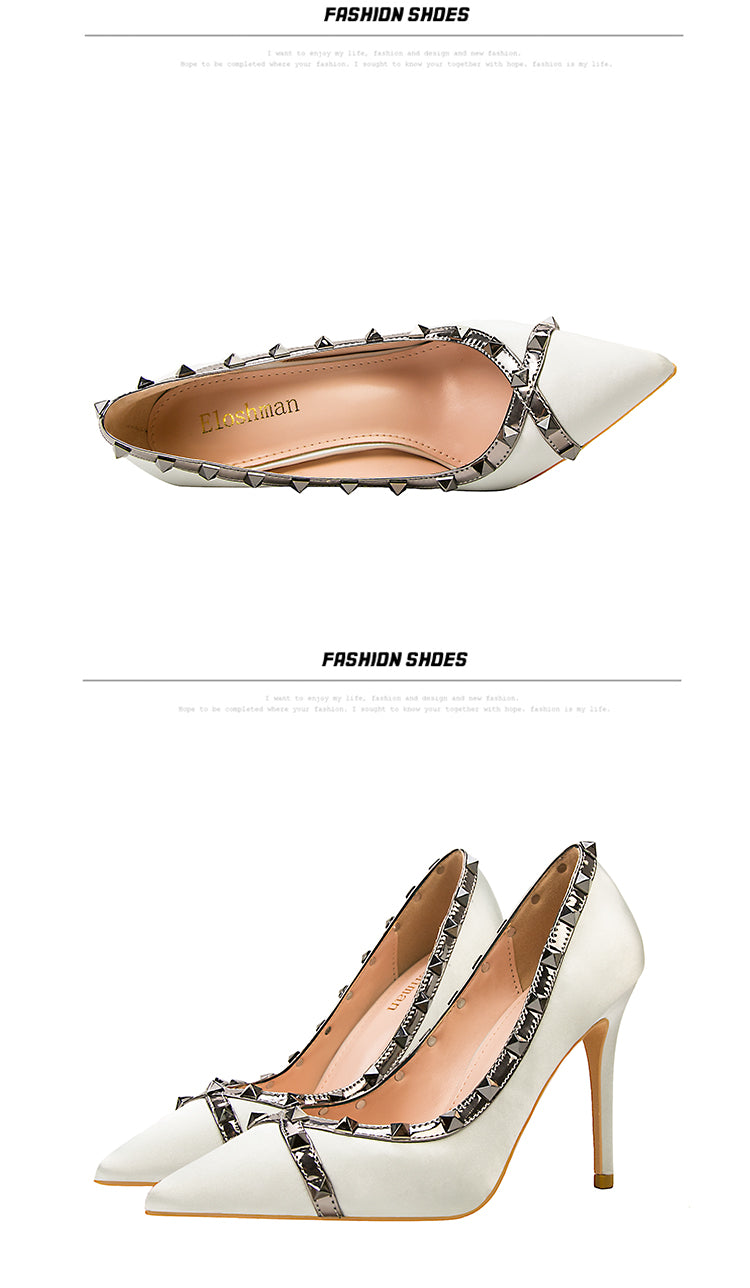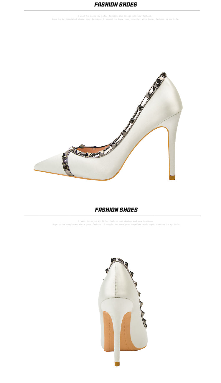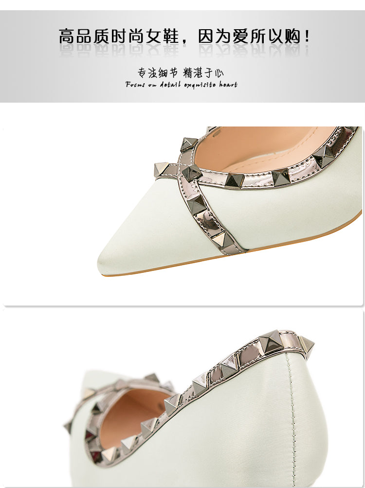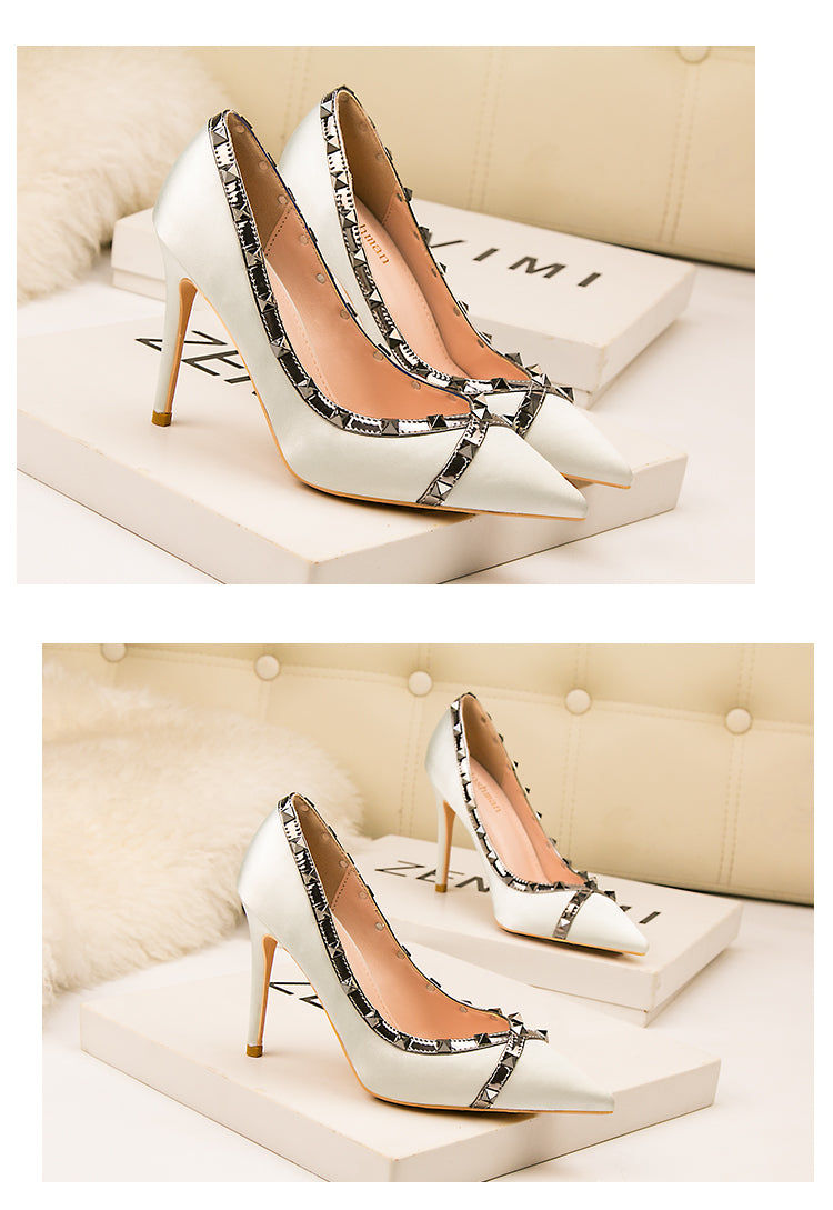 Fashion Rivet Satin Lady's Heel Pointed Toe Thin High Heel Shoes