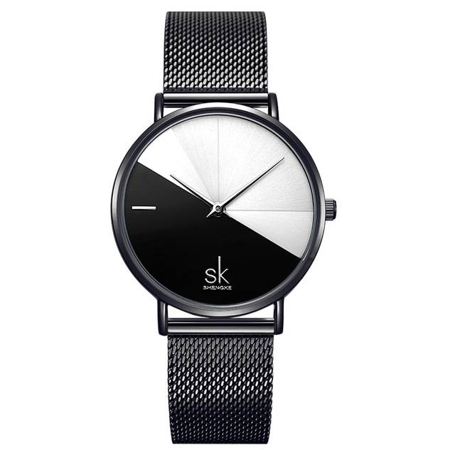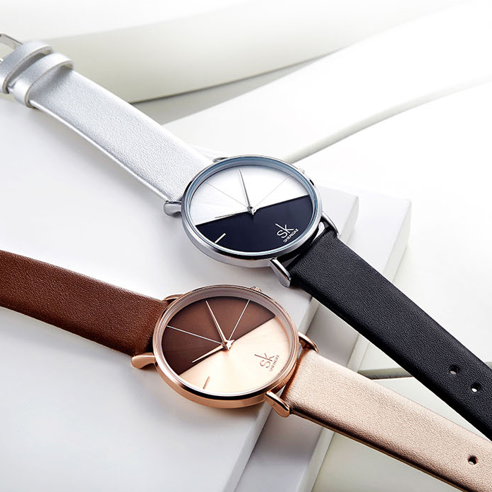 Solid Two-Toned Angled Split Style Stainless Steel Round Watch with PU Leather and Stainless Steel Strap; and Quartz Movement