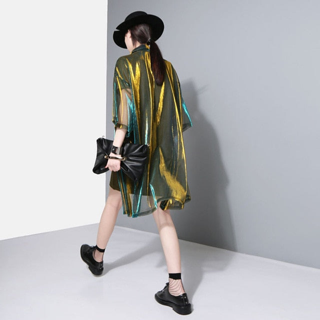 Cotton Solid Turn-Down Collar Three Quarter Sleeve Shirt Outer