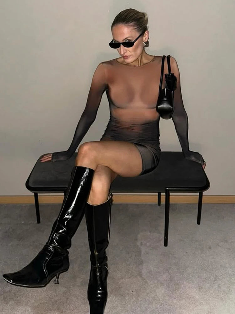 Embrace bold elegance with the Blush of Dawn Mini Dress. Crafted from a comfortable blend of cotton, polyester, and spandex, it contours your silhouette while offering effortless stretch. The classic O-neckline highlights your neckline with a subtle yet daring flair, perfect for turning heads day or night. This dress is made for confident moments and fearless style.