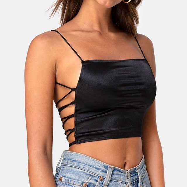 Back Lace-Up Closure Camisole Top with Full Spaghetti Straps