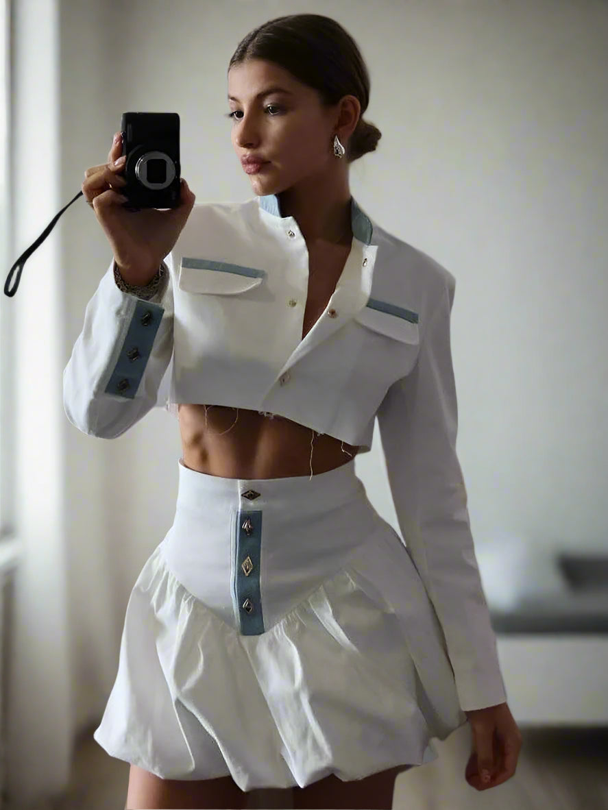 This Frosting Drip Skirt Set combines a crop shirt and skirt crafted from breathable cotton for all-day comfort. Its bold design lets you stand out effortlessly, making a daring statement wherever you go. Perfect for those who want to blend style with ease.
