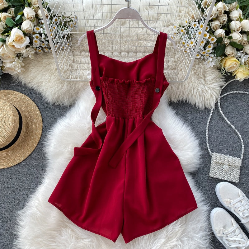 Solid Sleeveless Acetate Polyester Spandex Rompers