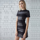 Solid Mono Stripe Style Cotton Spandex Mini Dress
