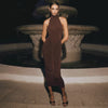 Embrace bold elegance with the No Sense In Telling Maxi Dress. Crafted from a sleek blend of polyester and spandex, this solid-colored A-line maxi dress offers a daring silhouette that moves with confidence. Its flattering cut enhances your figure while providing comfort and stretch, perfect for making a striking statement wherever you go.