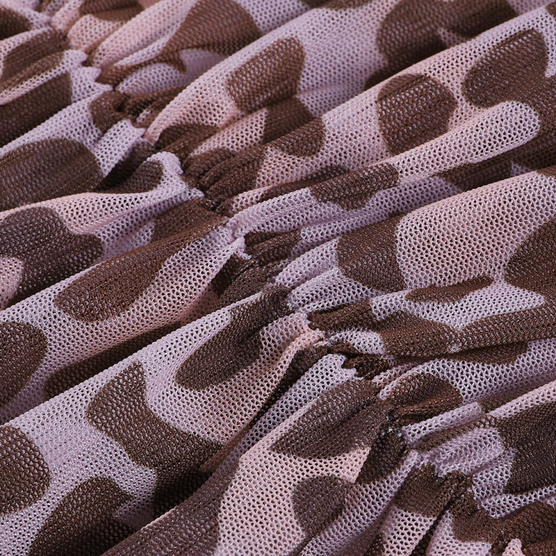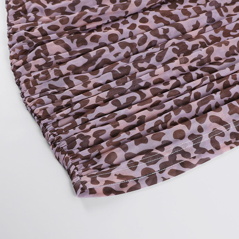 Sleeveless Double Strap One-Shoulder Mini Dress Made From Polyester Spandex Material with Full Leopard Pattern