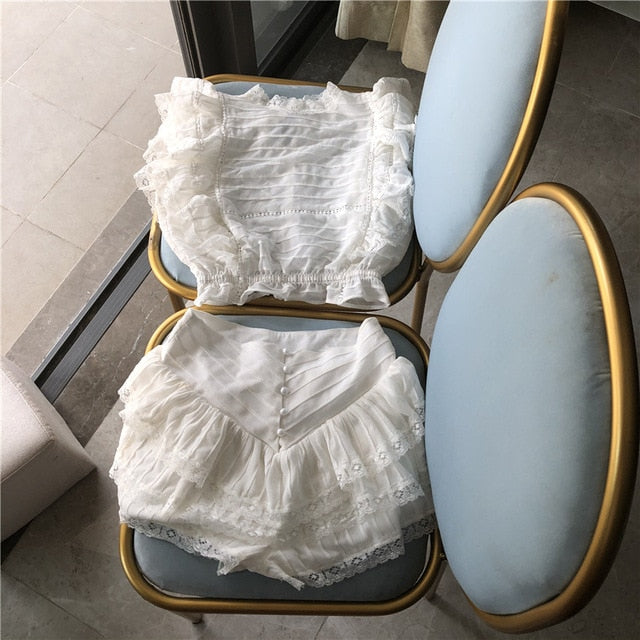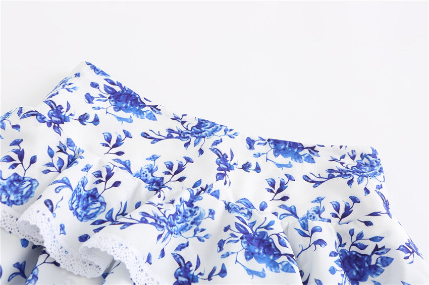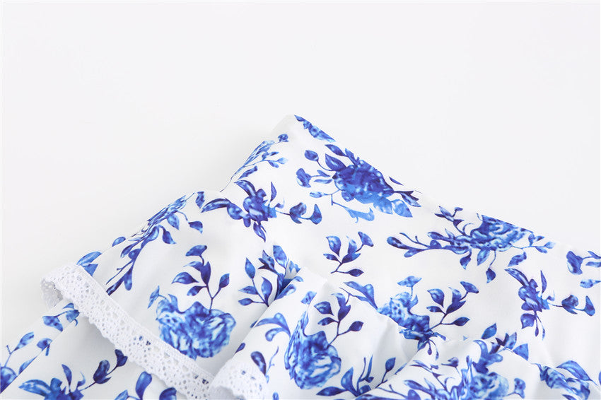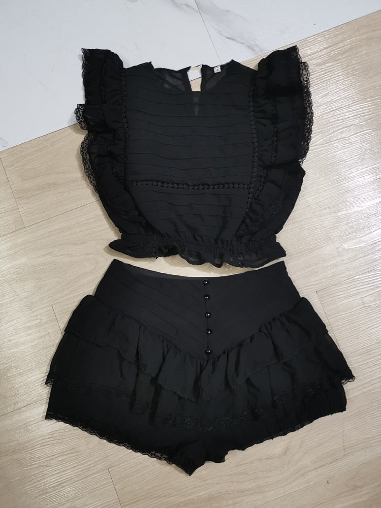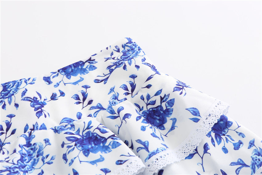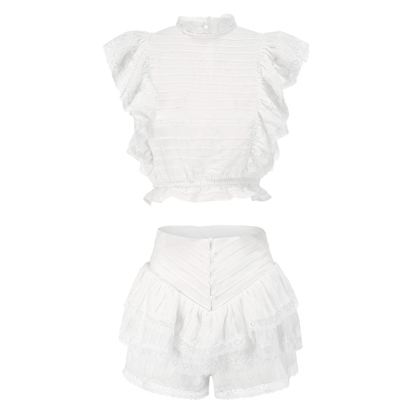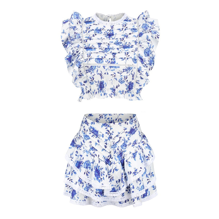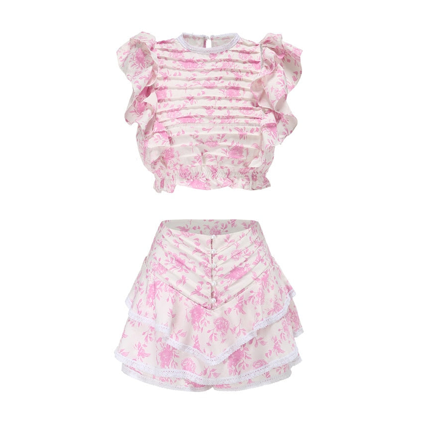 Polyester Butterfly Sleeve Pleated Floral Crop Top and Short Set