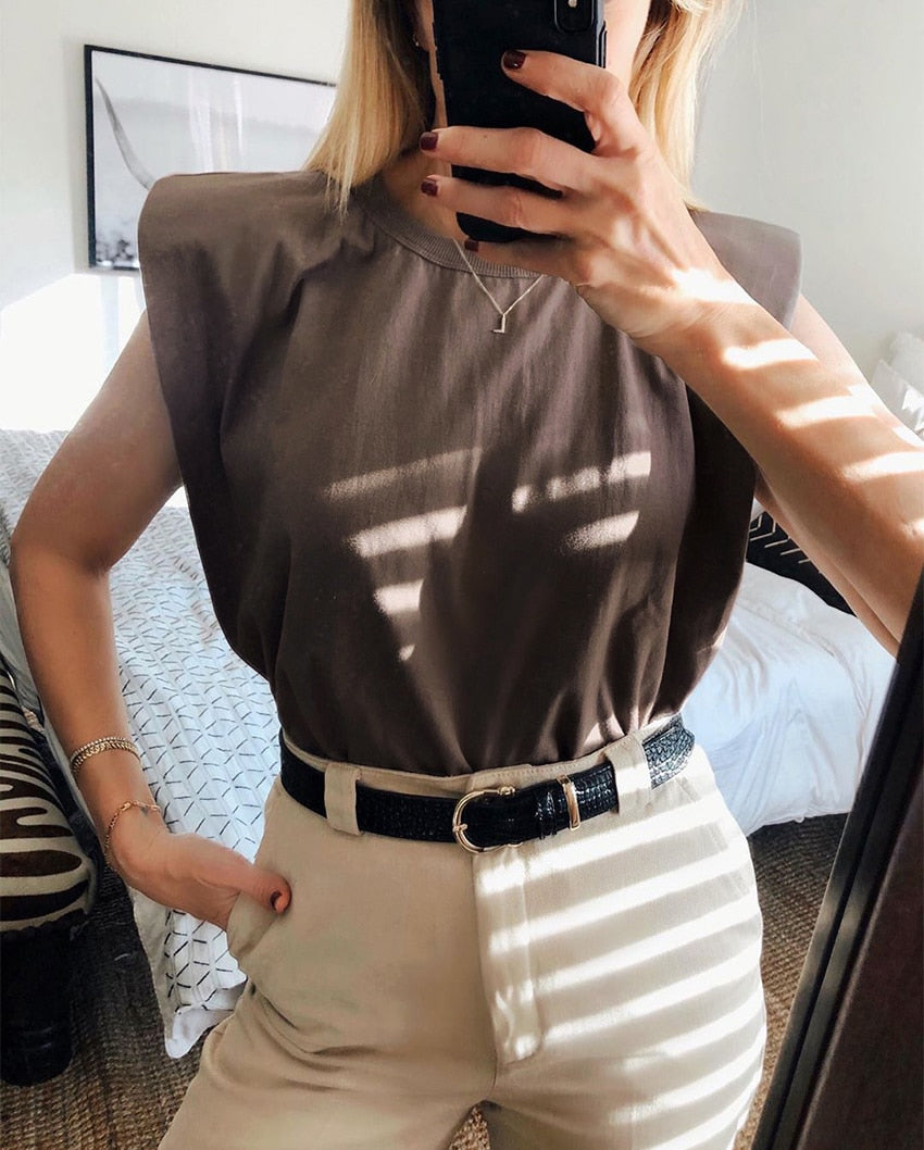 Solid Color Sleeveless Tee With O-Neck Collar And Cotton Material