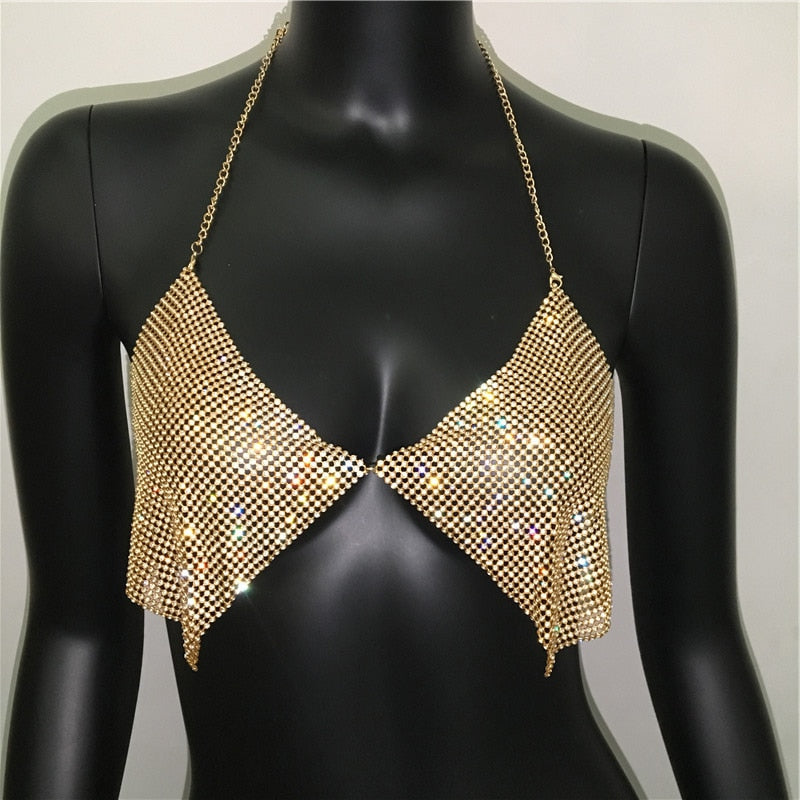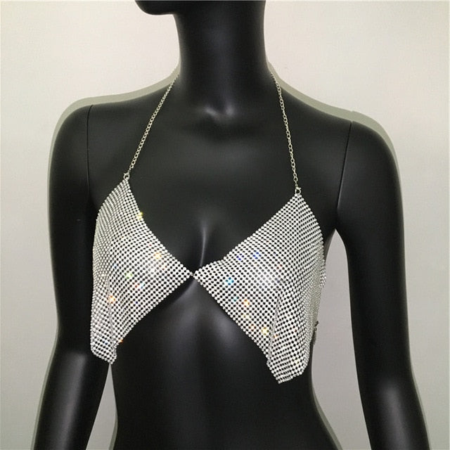 Halter Strap V-Neck Sequined Camisole Tops