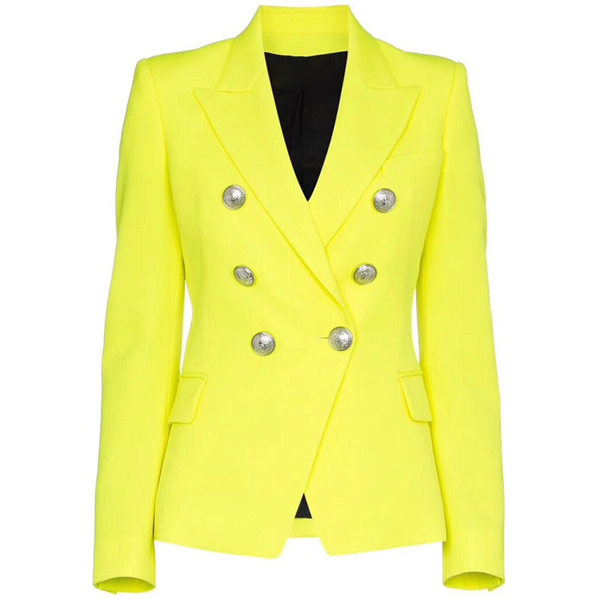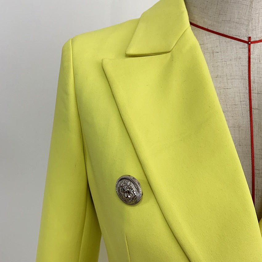 Wool Polyester on Double Breasted Notched Full Lenght Yellow Blazer
