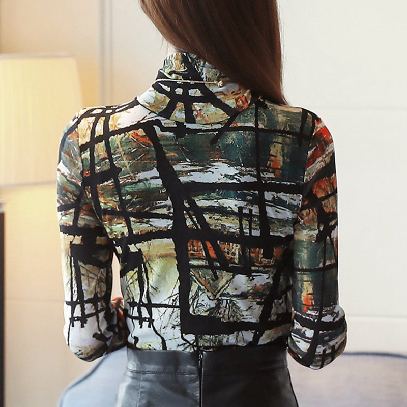 Casual Style Blouse with Print Pattern, Turtleneck Collar, Broadcloth Fabric Type, and Polyester Material