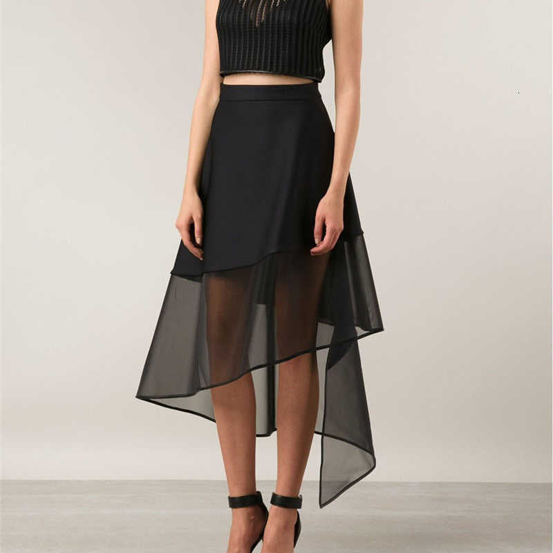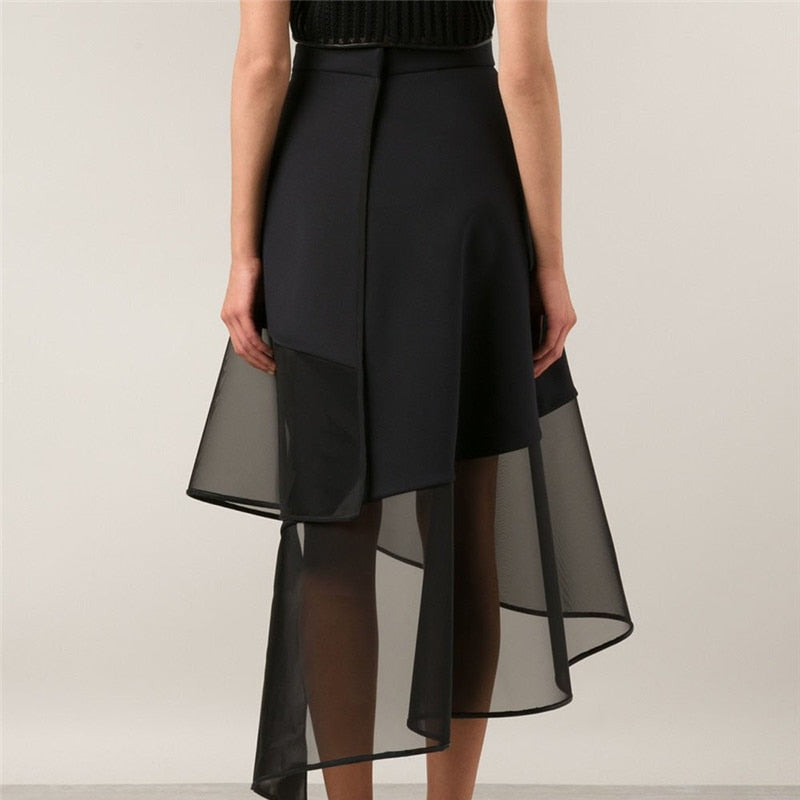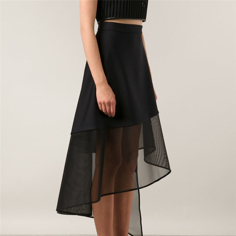 Solid Cotton A-Line Mini Skirt with See Through Layer Decoration