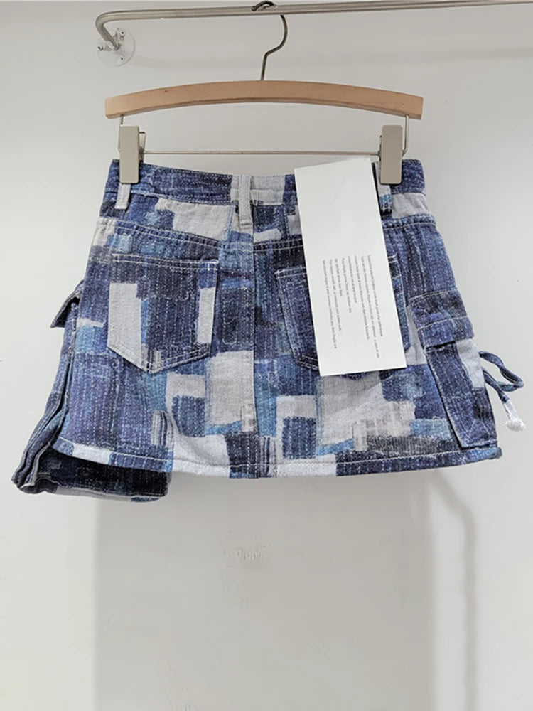 Indulge in effortless style with our skirt. This A-line skirt features a unique patchwork design made from polyester, making it durable and comfortable. Plus, it has pockets for added convenience. Elevate your wardrobe with this must-have piece today!