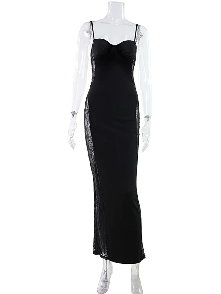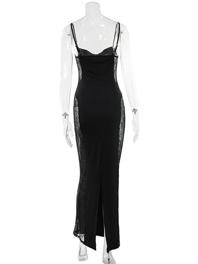 Black Patchwork Lace Maxi Dress