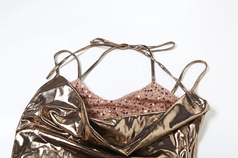 Unleash your inner sparkle with our Electric Stunner Mini Dress! The halter neckline adds a touch of sophistication, while the shimmering sequin decoration is sure to turn heads. Perfect for any occasion, this mini dress will make you feel confident and glamorous.