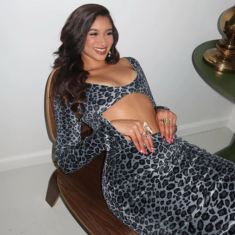 Be ready to make a statement on your first day with our First Day of My Life Maxi Dress. The slim fit design, made with a comfortable blend of polyester and spandex, is adorned with a chic leopard print pattern. Elevate your style and confidence with this must-have dress!