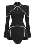 Grace Under Fire Mini Dress embodies fearless sophistication with its striking rhinestone embellishments that sparkle with every move. This daring piece demands presence—designed for those who thrive under pressure and refuse to dim their light. Make your entrance unforgettable.