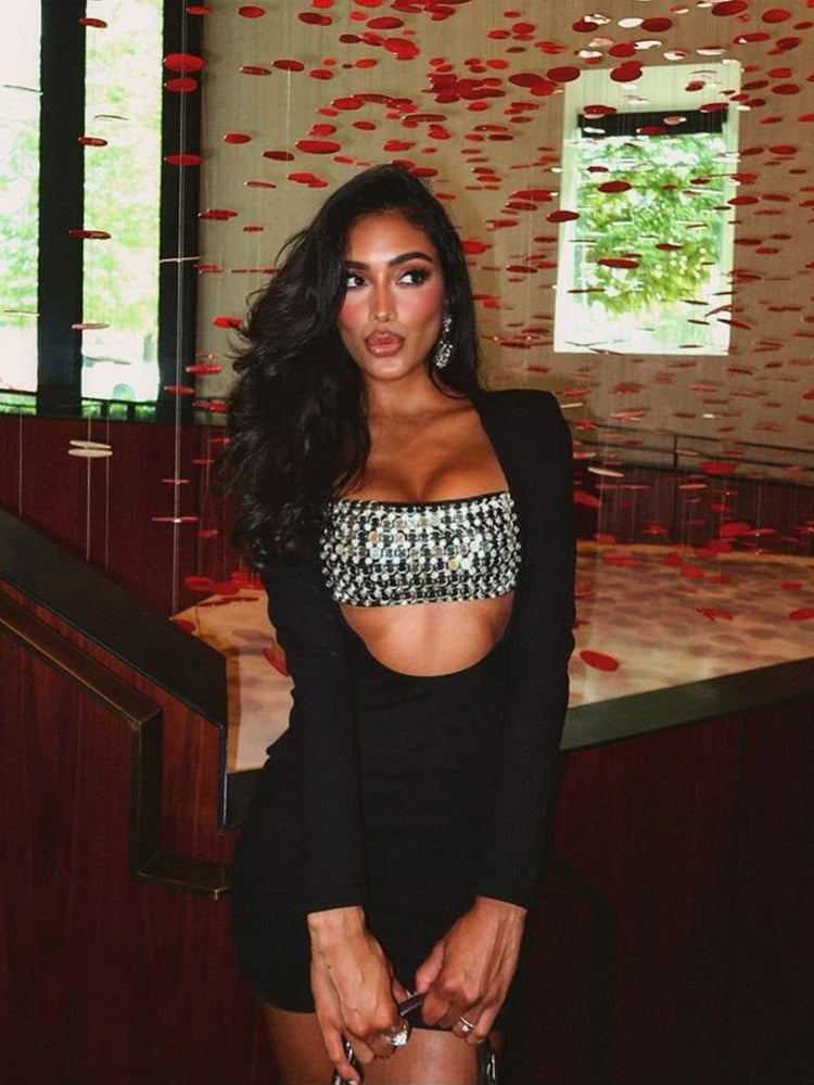 Elevate your style with our mini dress! Constructed from a blend of polyester, cotton, and spandex, this dress features bold stripes and intricate hollow-out detailing. Show off your figure while staying comfortable in this mini-dress that will surely turn heads.