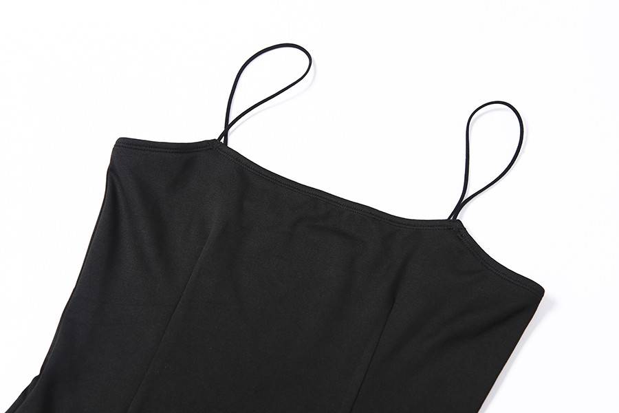 Polyester Spandex Maxi Dress with High Slit and Spaghetti Strap