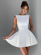 Be confident and catch everyone's attention with this mini-dress! Made of polyester and spandex, this solid dress is perfect for any occasion. The backless design adds a touch of playfulness and charm to your look. Make a statement with this mini dress!