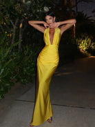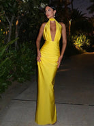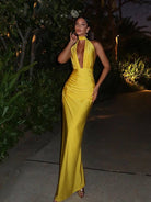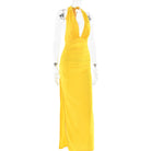 Discover the perfect blend of comfort and elegance with this long dress. Made with polyester and spandex, this solid-color dress features a stunning backless design that will turn heads wherever you go. Say goodbye to uncomfortable dresses and hello to effortless style.