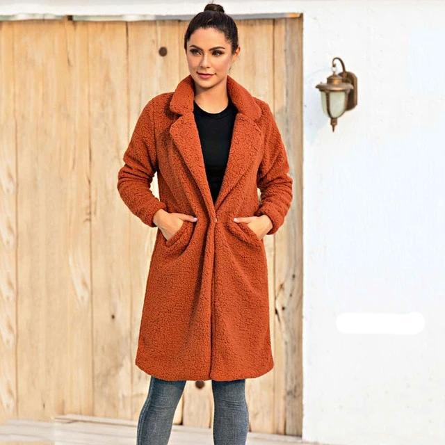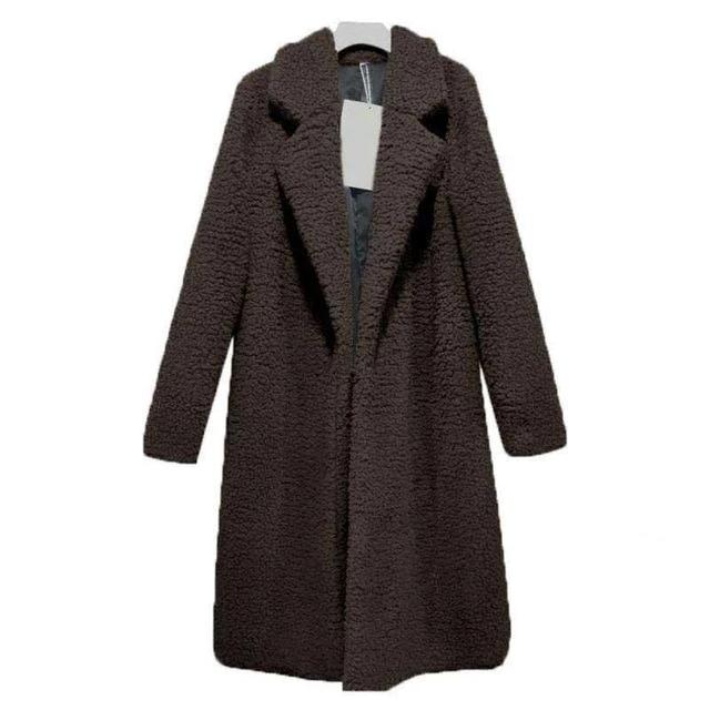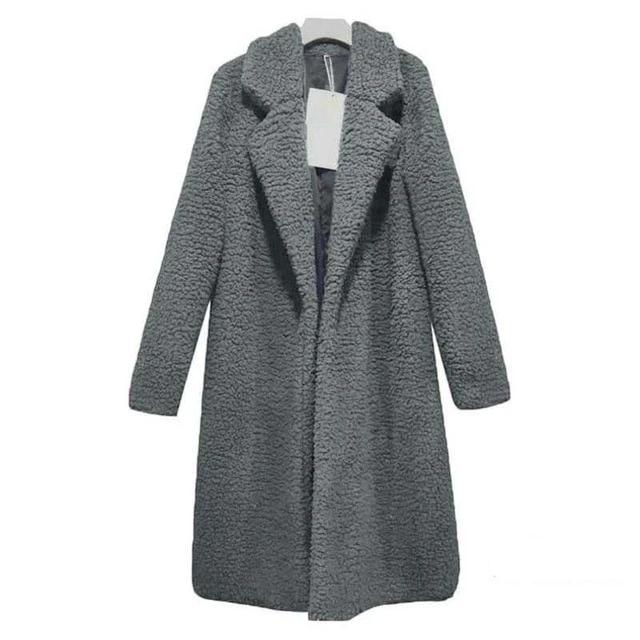 Solid Color Faux Fur Coat with Turn Down Collar