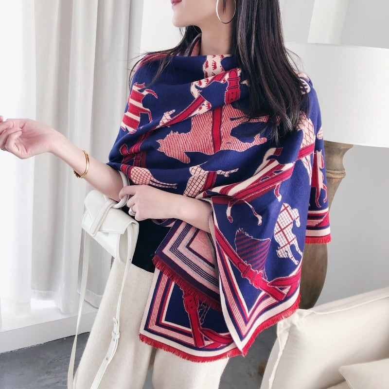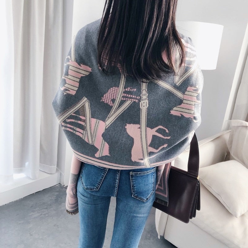 Animal Pattern Shawl With Cashmere Acrylic Material