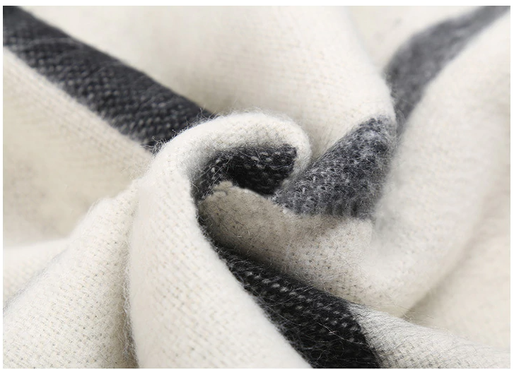 White Winter Scarf With Black Plaid Pattern And Acrylic Material