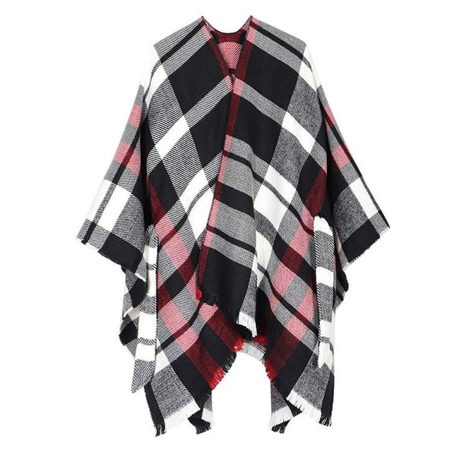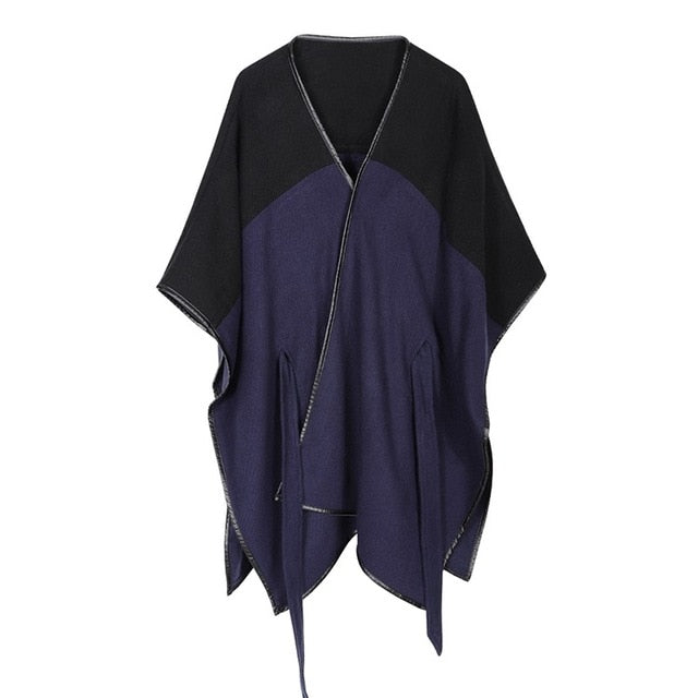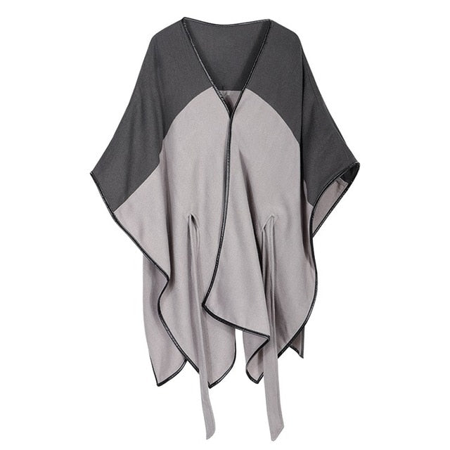 Elegant Poncho Scarf With Cashmere Material And Waistband Decoration