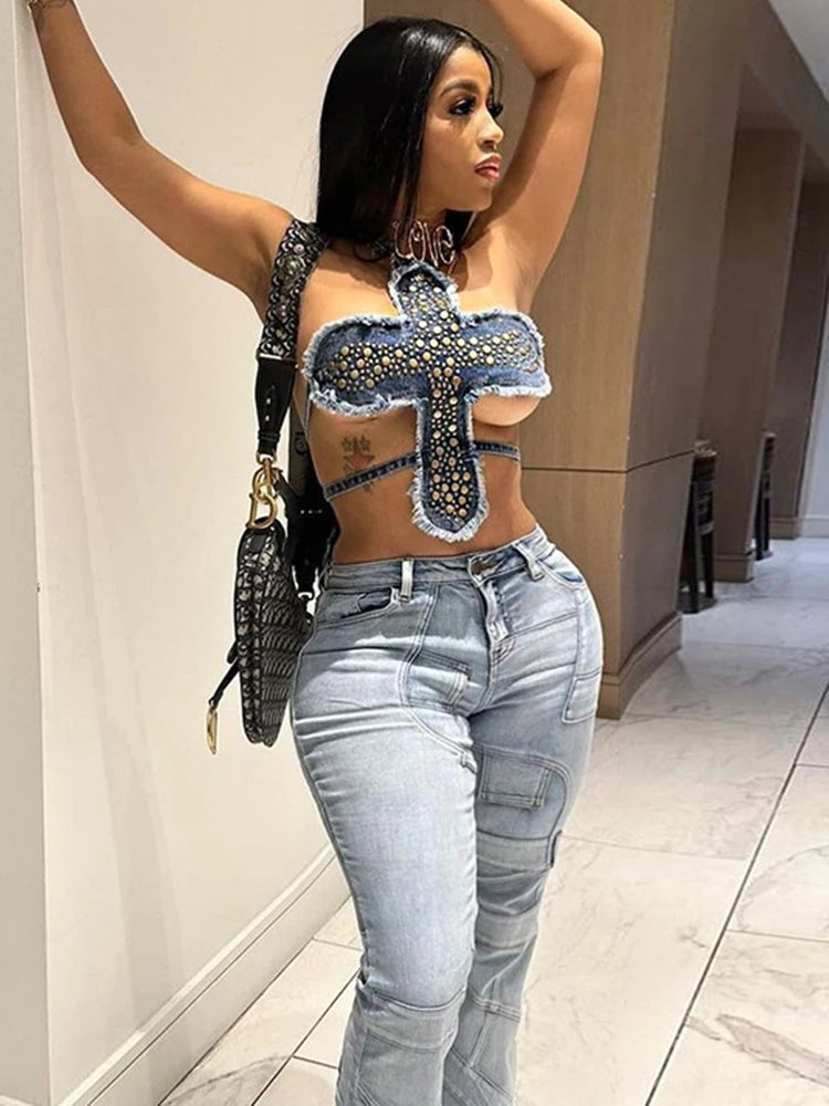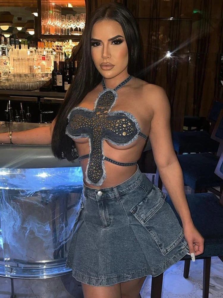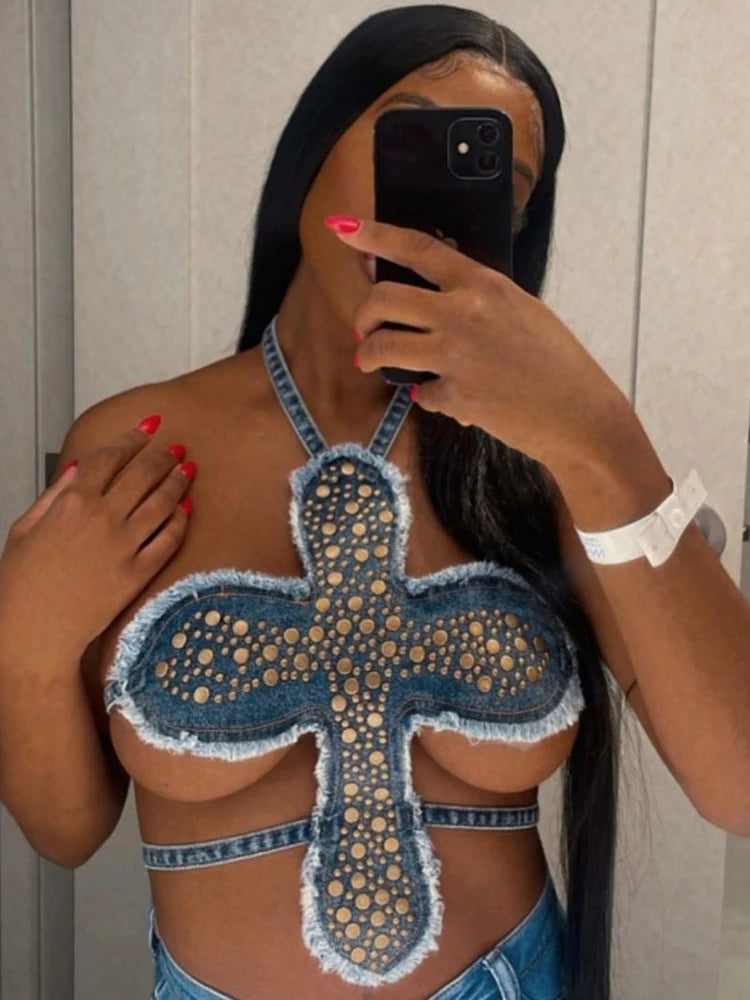 Indulge in the perfect blend of comfort and style with our Let Me Whisper Crop Top! Made from a luxurious denim fabric blend of cotton and polyester, this short length top is designed with a solid pattern and a daring backless decoration. Make a statement and turn heads with every wear.