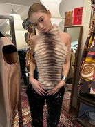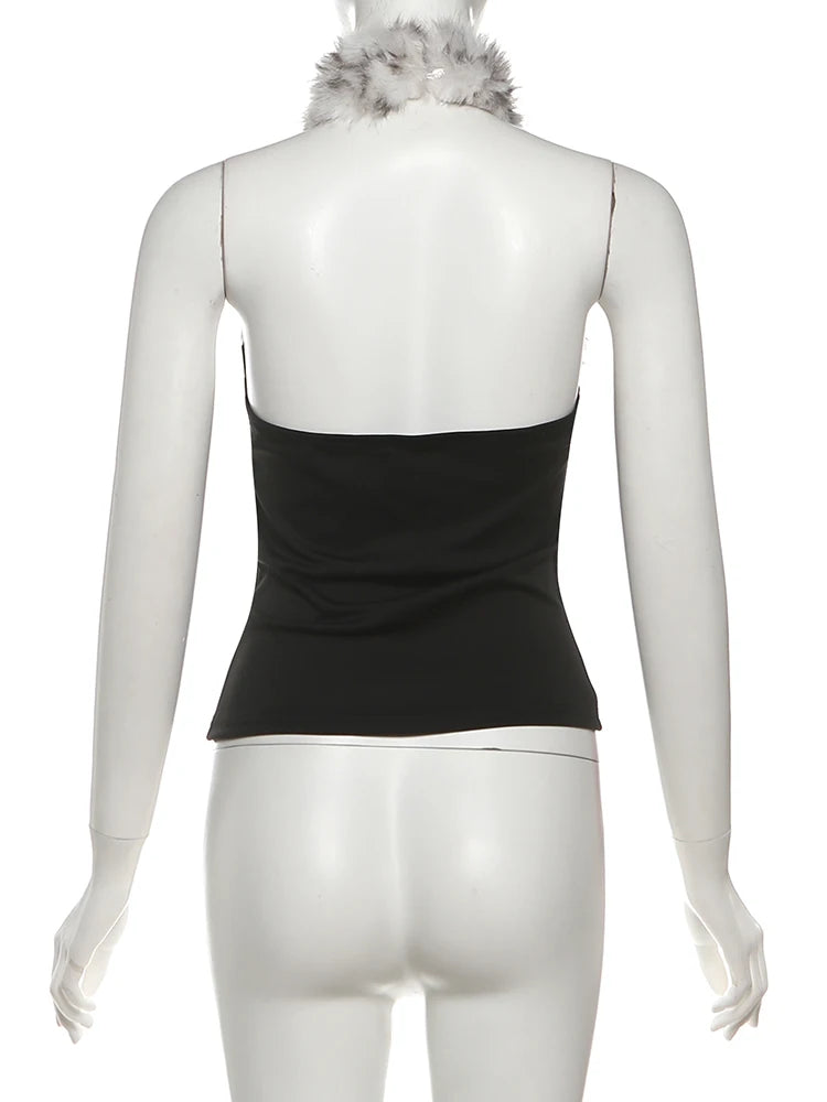 The Smoky Lull Tank Tops redefine bare-back glamour with fearless design. Crafted from a responsive polyester and elastane blend, this piece hugs your curves while the strategic backless cut exposes what you're proud to show. Luxe fur detailing adds an unexpected edge—transforming a simple tank into a statement piece that screams confidence.