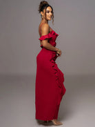 A Beautiful Distance Maxi Dress Embrace the tension between exposure and elegance. This ankle-length maxi strips away the back while layered ruffles create dynamic movement and texture. The polyester-spandex blend hugs your curves with confidence, delivering a look that's both provocative and refined. For those who dare to redefine sophistication on their own terms.