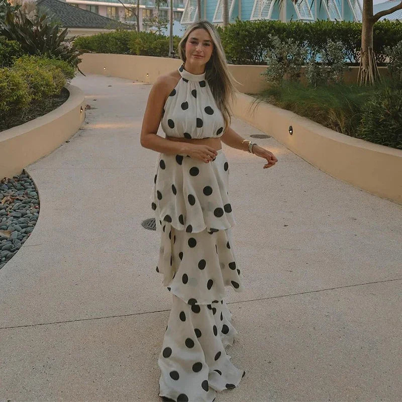A Woman Apart Skirt Set in striking polka dot pattern—bold, unapologetic style that refuses to blend in. This two-piece ensemble commands attention with its fearless design, perfect for those who dare to stand out. The classic polka dot motif gets a modern edge, delivering vintage-inspired charm with contemporary attitude. Ideal for making a statement at any occasion, this set celebrates individuality and confident self-expression.