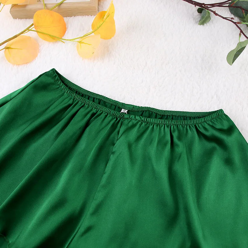 Indulge in luxurious comfort with Ain't Playin No Games Pajamas. Made with high-quality satin and polyester, enjoy a cozy night's sleep in these stylish pajamas. With a chic slash neck collar and trendy solid pattern, these shorts have full-length sleeves for added warmth. Relax and unwind in style.