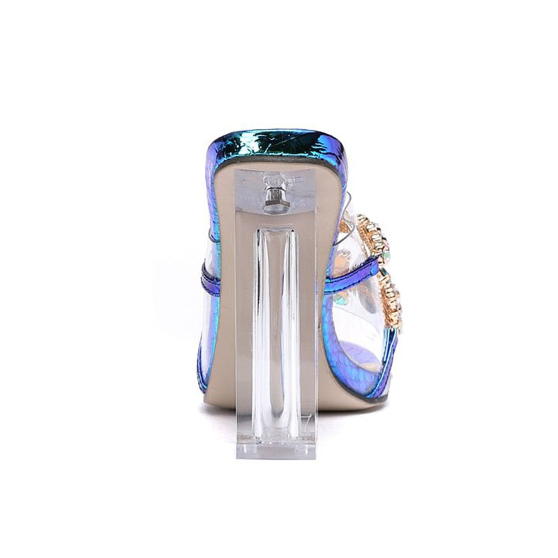 Pumps are a timeless staple of the fashion world. Whether you're looking for something with a more subdued look or a more bold look, pumps have got you covered. These pumps offer a striking contrast of PVC material and rhinestone decoration. With a super high square heel, these pumps are perfect for that next special occasion.