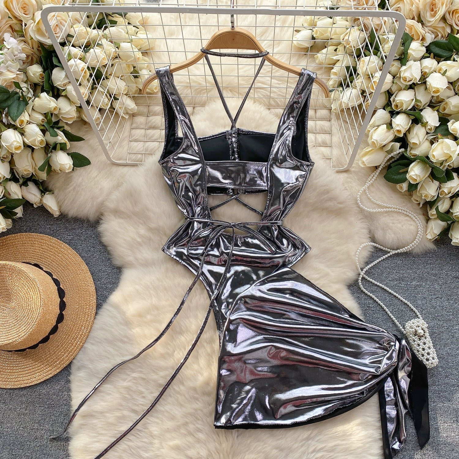 Unleash your inner glamour with the Beckoned Glam Bodysuit. Featuring a alluring hollow out decoration, it's made from a slight stretch polyester material for a perfect fit. The solid pattern adds a touch of elegance, making it the perfect statement piece for any occasion!