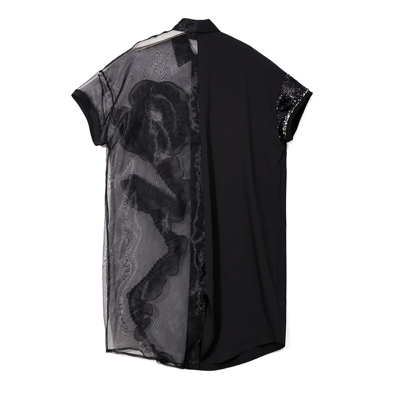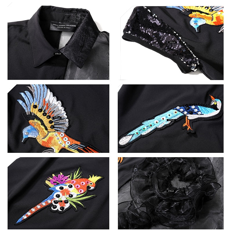 Cotton Acetate Mesh Chiffon Embroidery Animal Pattern Decoration Midi Dress