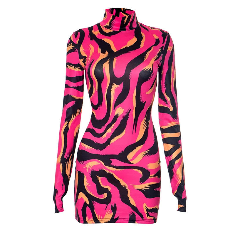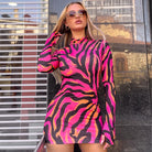 Make a fearless statement with the Bold Confession Mini Dress, featuring a striking zebra stripe pattern that demands attention. Crafted from smooth polyester, it offers a sleek fit with a flattering O-neckline. This daring design is perfect for those ready to express confidence and bold style wherever they go.