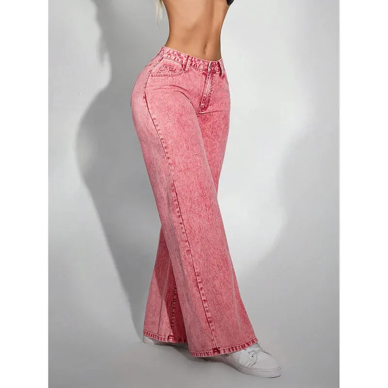 Make a statement in the Burnt Rose Wide Leg Jeans, crafted from a bold blend of polyester, cotton, and denim for durable comfort. Featuring a high waist and regular thickness, these jeans offer a daring silhouette that elongates your legs and elevates your everyday style.